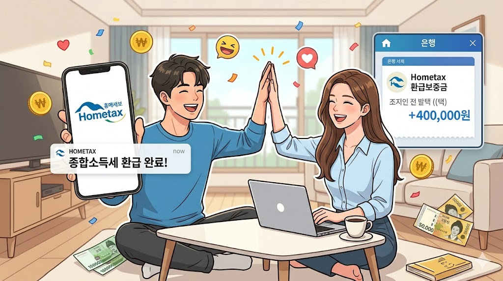 5월 31일까지 무사히 신고를 마쳤다면, 내가 돌려받을 환급금은 6월 말 ~ 7월 초 사이에 입력한 계좌로 쏙 입금됩니다. 관할 세무서에 따라 소득세(국세)가 먼저 들어오고, 며칠 뒤 지방소득세가 따로 들어오니 참고해 주세요.